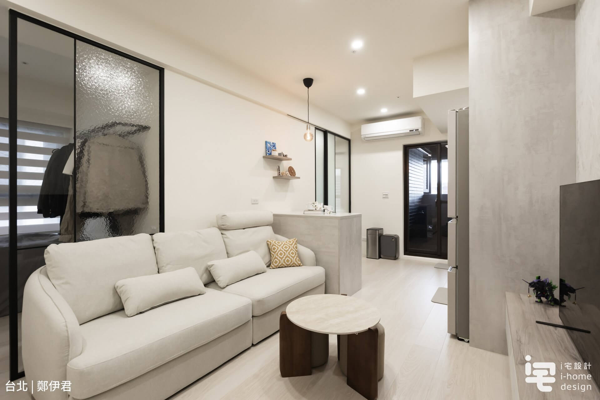 這是一間 15 坪的小宅,面積不大,但潛力十足,設計師以「輕居日常」為設計主軸,運用系統櫃材質變化設計讓小空間兼顧美觀及收納,並透過開放式格局、鋁框玻璃隔屏及拉門的穿透感放大空間 ,讓空間在視覺上更通透,也更符合日常使用的動線。有時候,生活不需要太多坪數,只要剛剛好的空間就足夠。