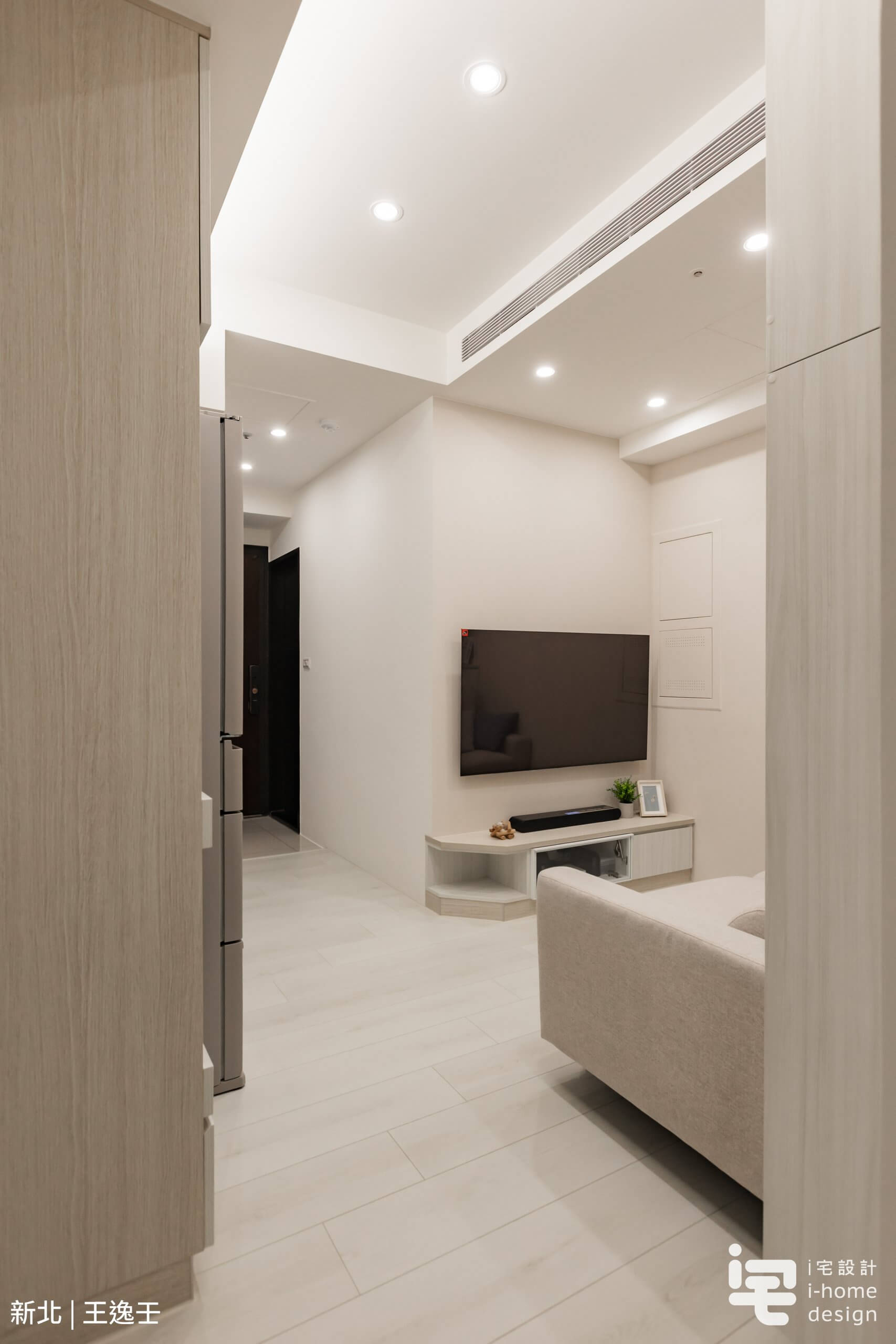 ▼為了保留寶貴的頭部空間,公領域採用吊隱式冷氣設計提升空間高度。平整的天花板線條讓整體更加簡潔,也消除了壁掛式冷氣的視覺干擾,是小宅設計中非常實用的做法。