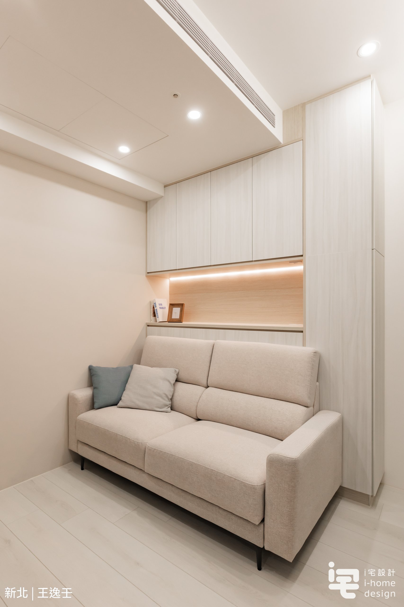 在這個只有 9.5 坪的小宅中,設計的核心不是「塞進更多」,而是如何在有限坪數裡取得收納機能與生活舒適度的完美平衡。從選用能放大視覺的淺色建材、以吊隱式冷氣取代壁掛式設備,到利用間接照明弱化大樑、營造柔和層次,每一個細節都在讓這個家「看起來比實際坪數更大、更舒服」。