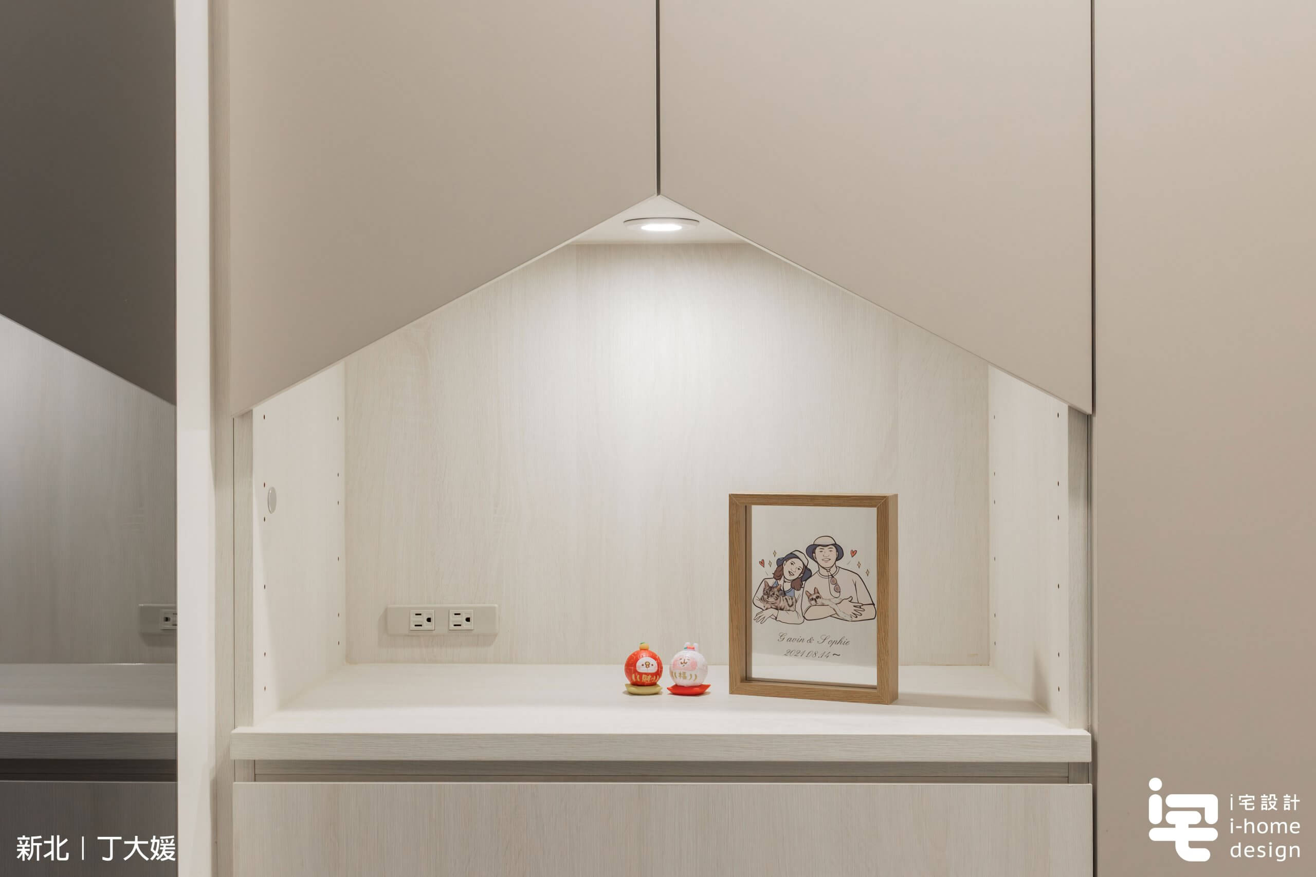 圓弧設計語彙延續於天花、系統櫃、床頭背板與空間轉角之中,形塑連貫而柔和的視覺輪廓,使整體空間更顯輕盈、層次純淨。搭配留白牆面與低彩度材質運用,讓居家氛圍回歸生活本身,呈現出溫柔而耐看的室內設計風格。