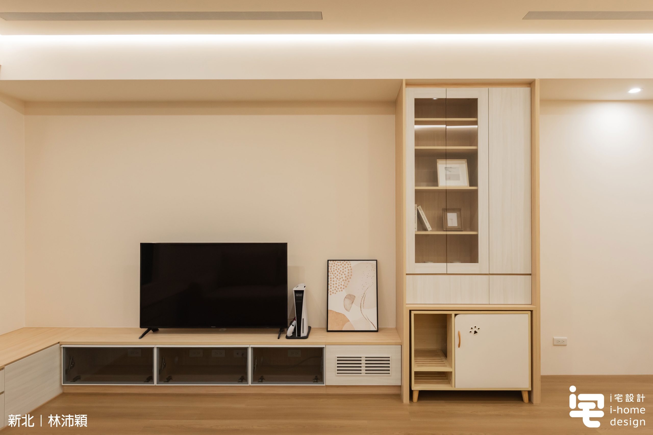 【客廳電視牆設計|低矮櫃延伸 × 寵物友善空間】